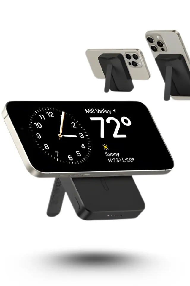 ج: الأمر في غاية البساطة؛ بمجرد تقريبه من ظهر هاتفك المتوافق مع MagSafe سيلتصق مغناطيسياً ويبدأ الشحن تلقائياً، أو يمكنك استخدامه كشاحن تقليدي عبر كابل USB-C.
