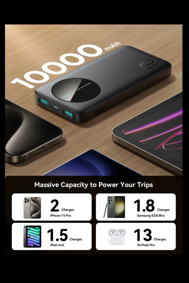 الحل العملي وصل مع باور بانك Joyroom 10000 MAH! ده مش مجرد باور بانك 10,000 مللي أمبير عادي، ده متصمم بحجم Mini صغير جداً، يعني ترميه في جيبك أو شنطتك ومش هتحس بوزنه، ومع ذلك هيديك الطاقة اللي محتاجها وزيادة.