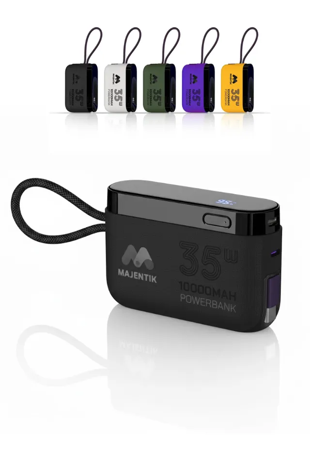 باور بانك Majentik MJ-13 بسعة 10000 مللي أمبير ليس مجرد شاحن، بل هو محطة طاقة متنقلة. يتميز بتقنية PD السريعة 35W وكابل Type-C مدمج، مما يضمن شحن أجهزتك الحديثة (هواتف، تابلت، إلخ) في وقت قياسي ودون الحاجة لحمل كابلات إضافية.
