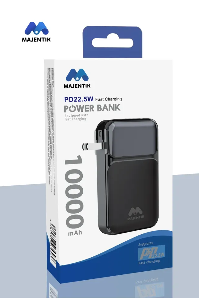 مع الباور بانك الـ 3 في 1 Majentik MJ-22 .. تليفونك دايمًا مشحون وجاهز. إحنا مش بنكلمك عن باور بانك عادي، ده “محطة طاقة” متنقلة بقوة 10,000 مللي أمبير وتصميم عبقري! تخيل إن فيه كابلات مدمجة (Type-C و Lightning للآيفون) يعني مش محتاج تشيل أسلاك معاك خالص، وده غير إنه بفيشة داخلية.. يعني بيشتغل شاحن حائط (راس شاحن) وباور بانك في نفس الوقت! 🔌📱