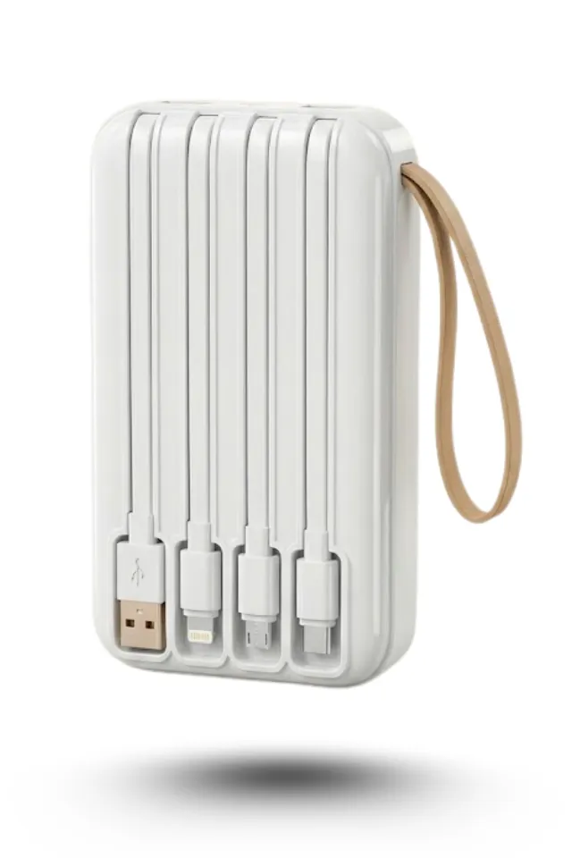 • مش محتاج وصلات: الباور فيه 4 وصلات ثابتة داخلية (ميكرو – تايب سي – آيفون – USB)، يعني اشحن أي موبايل في أي وقت من غير ما تشيل سلك واحد معاك.